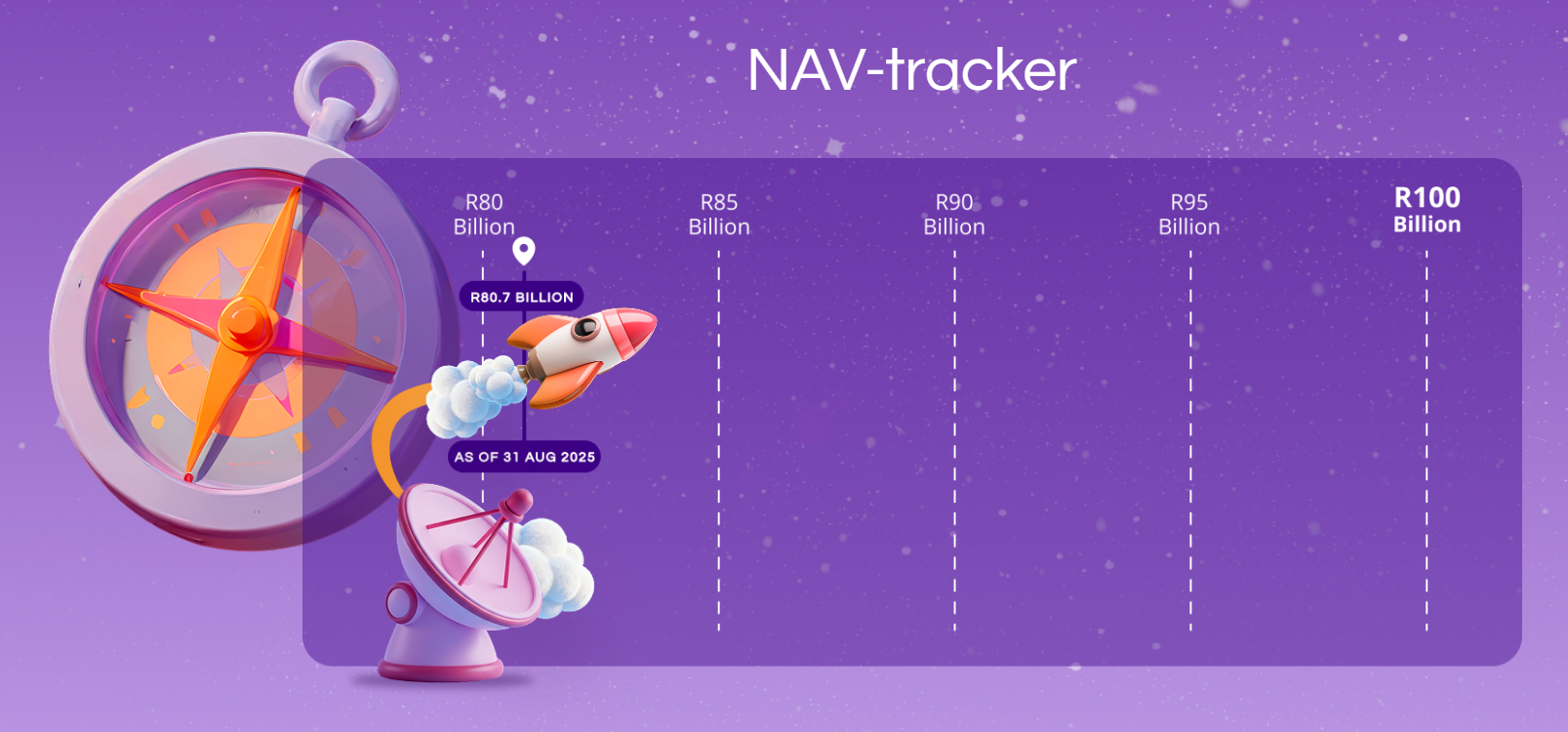 NAVigator (see the pun we did there? ) turns that into a bit of fun: pick the date you think we’ll cross R100B in client Net Asset Value (NAV). From the 1st of November 2025, If you’re on Thrive Level 3 or higher, you can submit your guess once a month, and the prize pot just keeps growing. The closer we get, the more fuel in the rocket. And the bigger your potential reward.