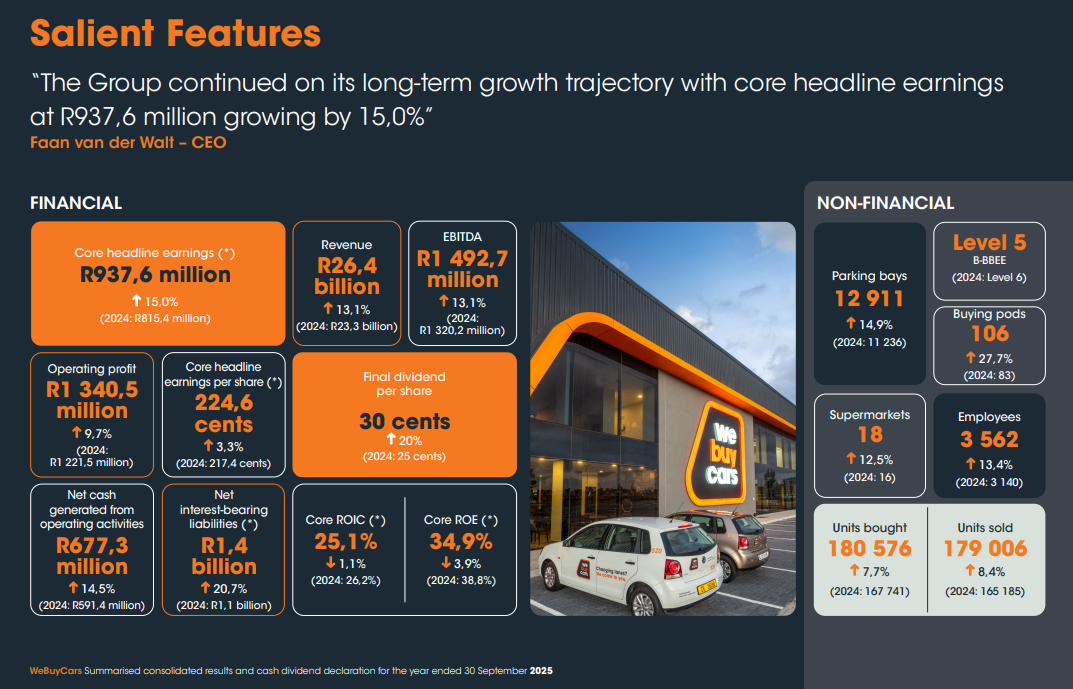 For the year ended 30 September 2025, WeBuyCars delivered results that show a business firing on all cylinders — disciplined, cash-generative, and still deeply connected to the people who power it.