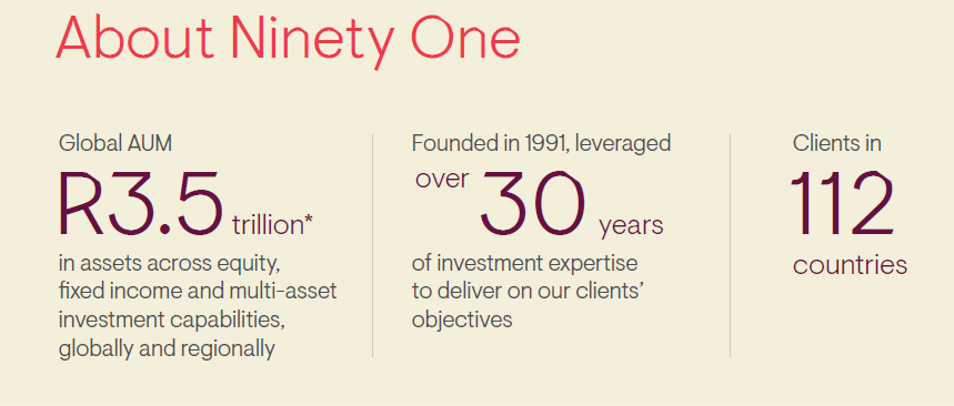 Ninety One is a global investment manager that started in South Africa in 1991. They manage around R3.5 trillion across different types of investments, including income, equity and multi-asset funds.