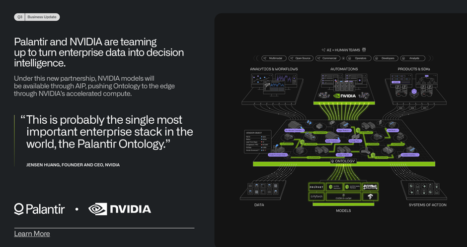 The co-development partnership with Nvidia adds further momentum. The collaboration integrates Palantir’s Ontology software directly with Nvidia’s AI hardware and model stack, enabling joint reference workflows that deliver optimized performance out of the box. It’s a meaningful step toward offering enterprises a turnkey AI solution, reducing the friction between infrastructure and application layers.